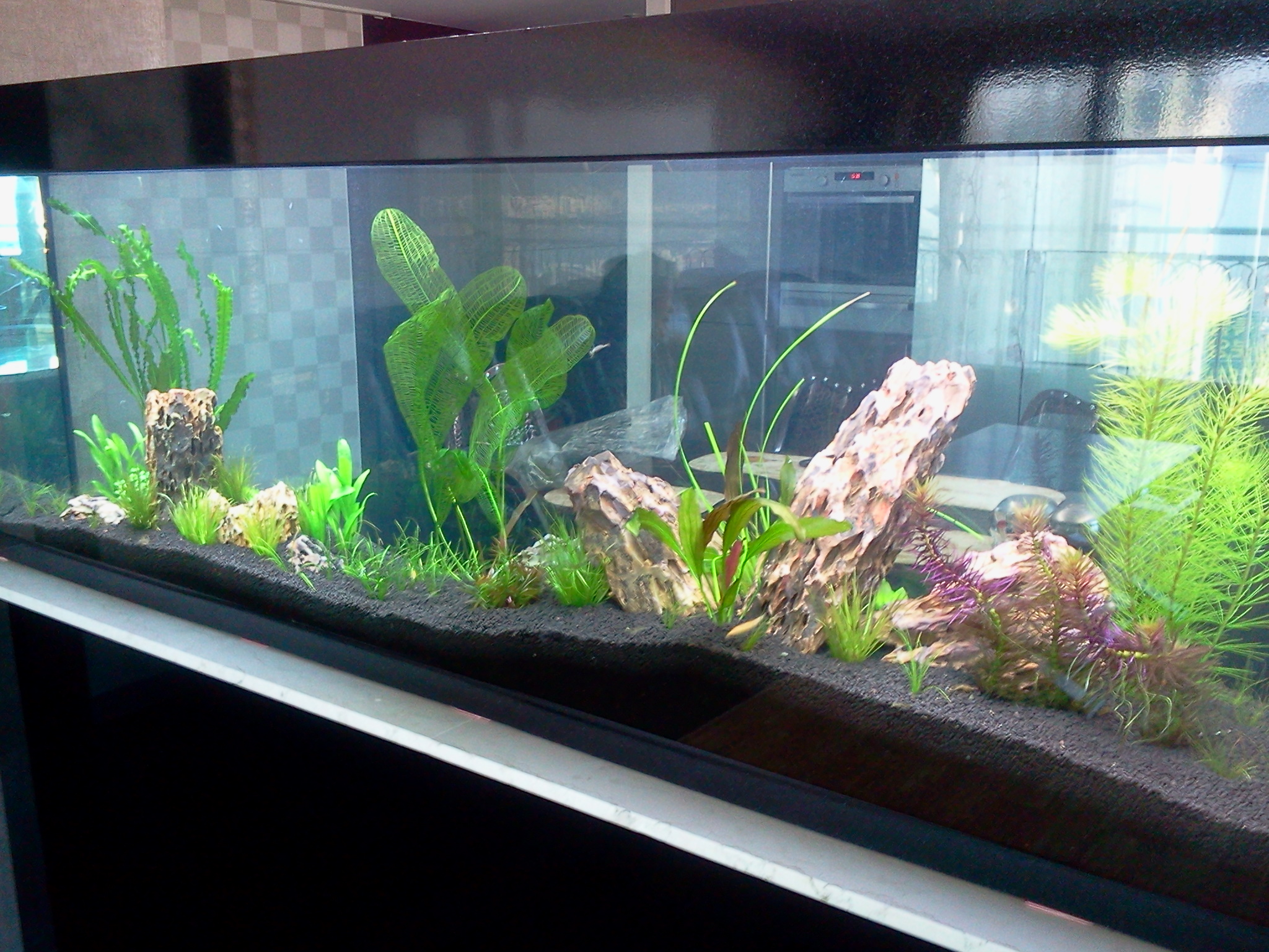 거실과 주방사이에 설치된 수조로 엄청 긴 어항입니다.